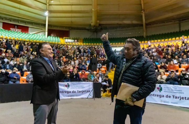 **Durante la entrega de dos mil 800 tarjetas de la Pensión Adultos Mayores, se...