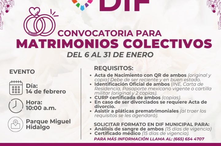 • El próximo 14 de febrero se llevará a cabo la ceremonia de Matrimonios...