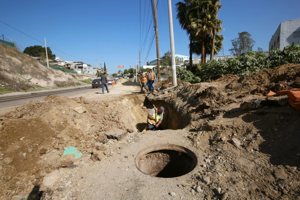 Mencionó que, se avanza en la reposición de 82 metros de tubería el subcolector Cochimíes, ubicado en la colonia Guaycura, tubería de policloruro de vinilo (PVC) de 18 pulgadas de diámetro, trabajos que garantizarán la eficiencia y la longevidad de la infraestructura sanitaria en dicha zona.