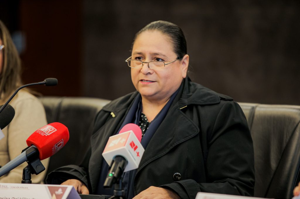 En conferencia de prensa en la ciudad de Mexicali, la funcionaria estatal informó que una denuncia se integra por deficiencias en el ejercicio del recurso federal para el mantenimiento de escuelas bajacalifornianas por 64 millones de pesos, por lo que se están previendo delitos de ejercicio ilícito del servicio público, uso ilícito de atribuciones y peculado, presuntamente cometidos por 11 personas servidoras públicas y un particular.